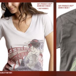 Another limited edition product just came out today. This time, it is the GAP’s (PRODUCT) RED artist edition t-shirts. There are two designs for both men and women. T-shirts should become available both on GAP site as well as (PRODUCT) RED participating stores nationwide in the US.