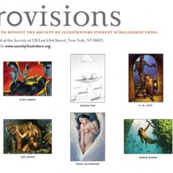 Microvisions is an annual exhibit and auction to benefit the Society of Illustrators Student Scholarship. It is organized and curated by Irene Gallo of TOR Books and illustrator Daniel Dos Santos.