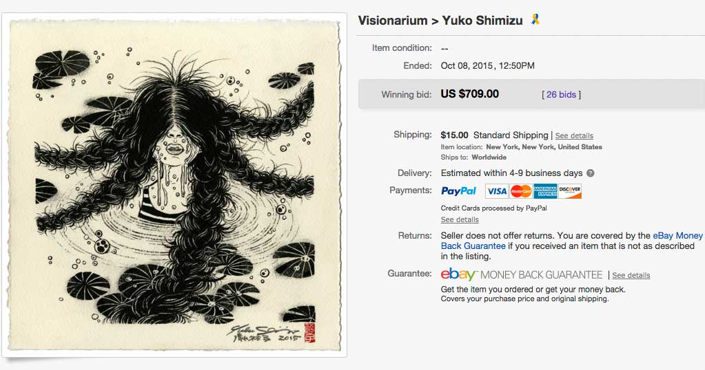 The auction will go live starting September 28th, and will end on October 7th. Auction info and bidding details are now live on Ebay. Bid on my drawing here.