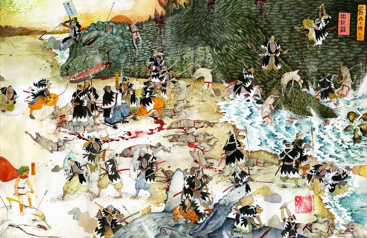 This exhibition was guest curated by Eric Nakamura, editor and founder of Giant Robot, and conbines historical Japanese arms and armor with works by contemporary artists ainspired by samurai and their enduring myth.