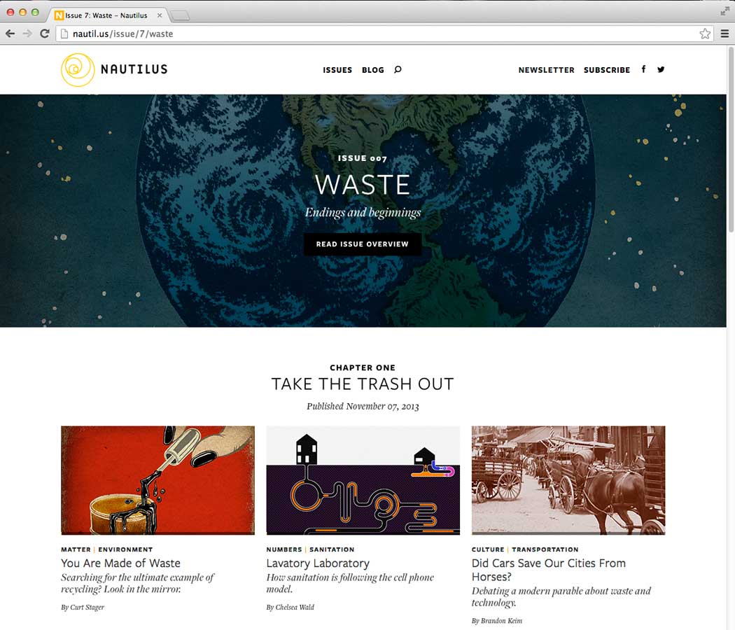For the last month and half or so, I have been working on an extensive project with new online (and quarterly print) science magazine Nautilus. One of the most exciting new thing happening in the editorial world.