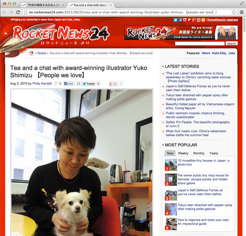 Asian pop culture and news blog Rocket News 24 came to visit my studio earlier this summer, and recently posted bunch of photos and a short article. It is a virtual studio visit experience. You can choose to read in English or in Japanese.