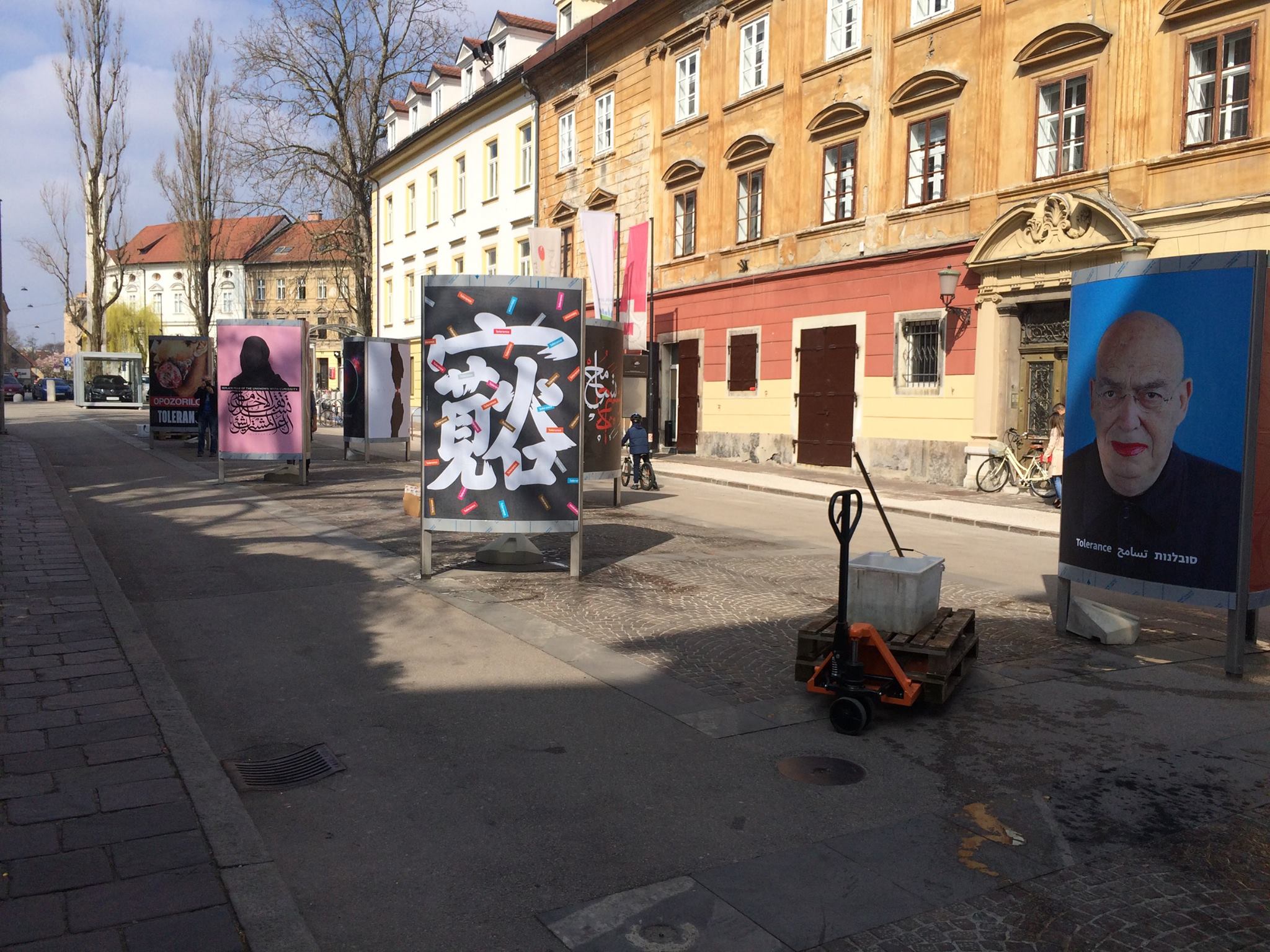 Open Air exhibition of tolerance themed posters designed by renowned artists from around the world for the Festival House of Tolerance 2017. Author of the exibition: Mirko Ilić. Designers: Milton Glaser (USA), Yuko Shimizu (Japan), Paula Scher (USA), Miran Mohan, Novi kolektivizem (Slovenia), Iztvan Orosz (Hungary), Peter Bankov (Russia), Jainping He (China), Fons Hickmann (Germany), Michel Bouvet (France), Chaz Maviyanne-Davies (Zimbabwue), Alejandro Magallanes (Mexico), David Tartkover (Israel), Sue Coe (Great Britain), Anette Lez (France), Tarek Atrissi (Libanon), Hamza Abdelal (United Arab Emirates), Mwalimu Saki Mafundikwa (Zimbabwue), Sarp Sozdinler (Turkey), Reza Abedini (Iran), Xiao Yong (China), Felipe Taborda (Brazil), Manuel Estrada (Spain)